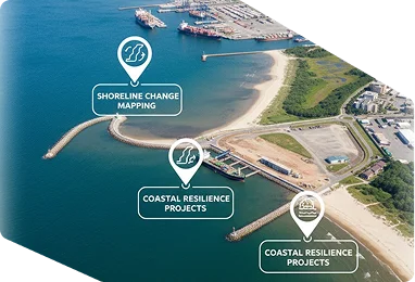 Map shoreline change, ports, and coastal resilience projects.